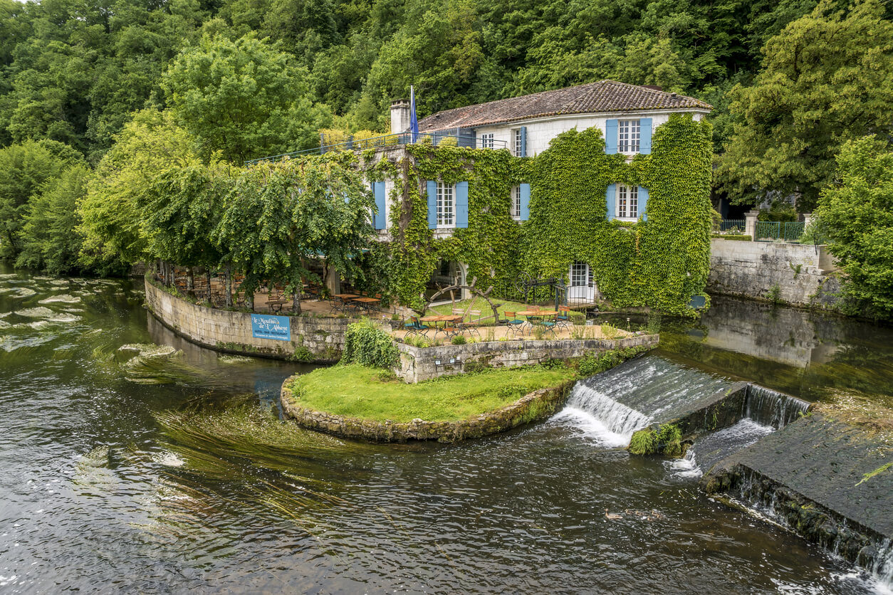 Avec Brantôme, nous voici dans le Périgord Vert ! Cette petite cité de caractère a la particularité d'être bâtie sur une île encerclée par la rivière Dronne. Entourée d'eau, elle est nommée la « Venise du Périgord ». Entre son abbaye magnifique adossée à la falaise, et ses eaux apaisantes, la visite de Brantôme a quelque chose de féerique.