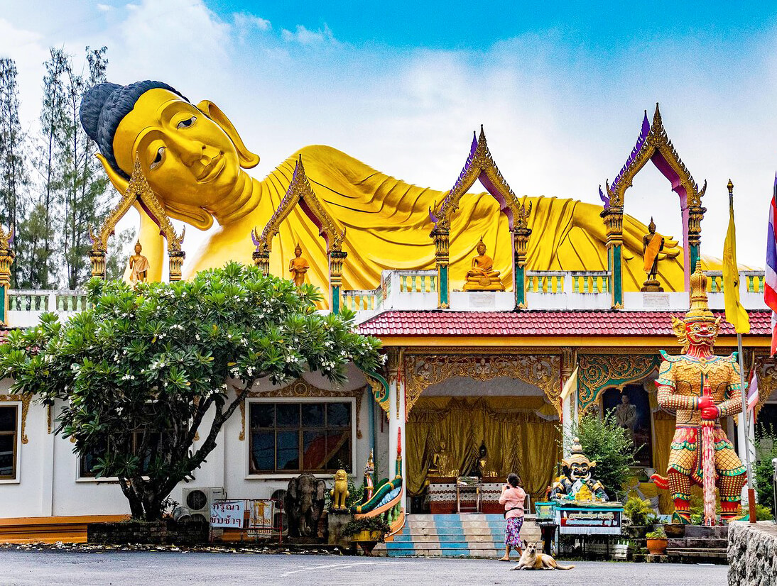 Voici un petit temple bouddhiste qui retiendra votre attention. Son énorme Bouddha couché qui dépasse du toit est visible de loin. À l'intérieur, de petites statues colorées vous attendent, ainsi qu'un bassin et des autels superbement ornés.