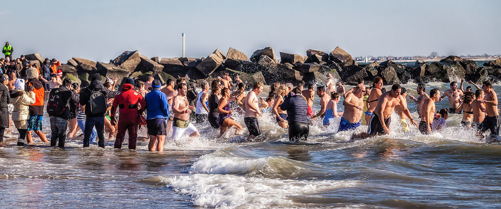 Il ne faut pas avoir peur d'avoir froid aux fesses pour faire comme des centaines de New-Yorkais qui tous les ans au Nouvel an se jettent dans l'océan Atlantique. Cette baignade hivernale permet de récolter des fonds pour une association à but non lucratif œuvrant pour les enfants malades. Oserez-vous ?