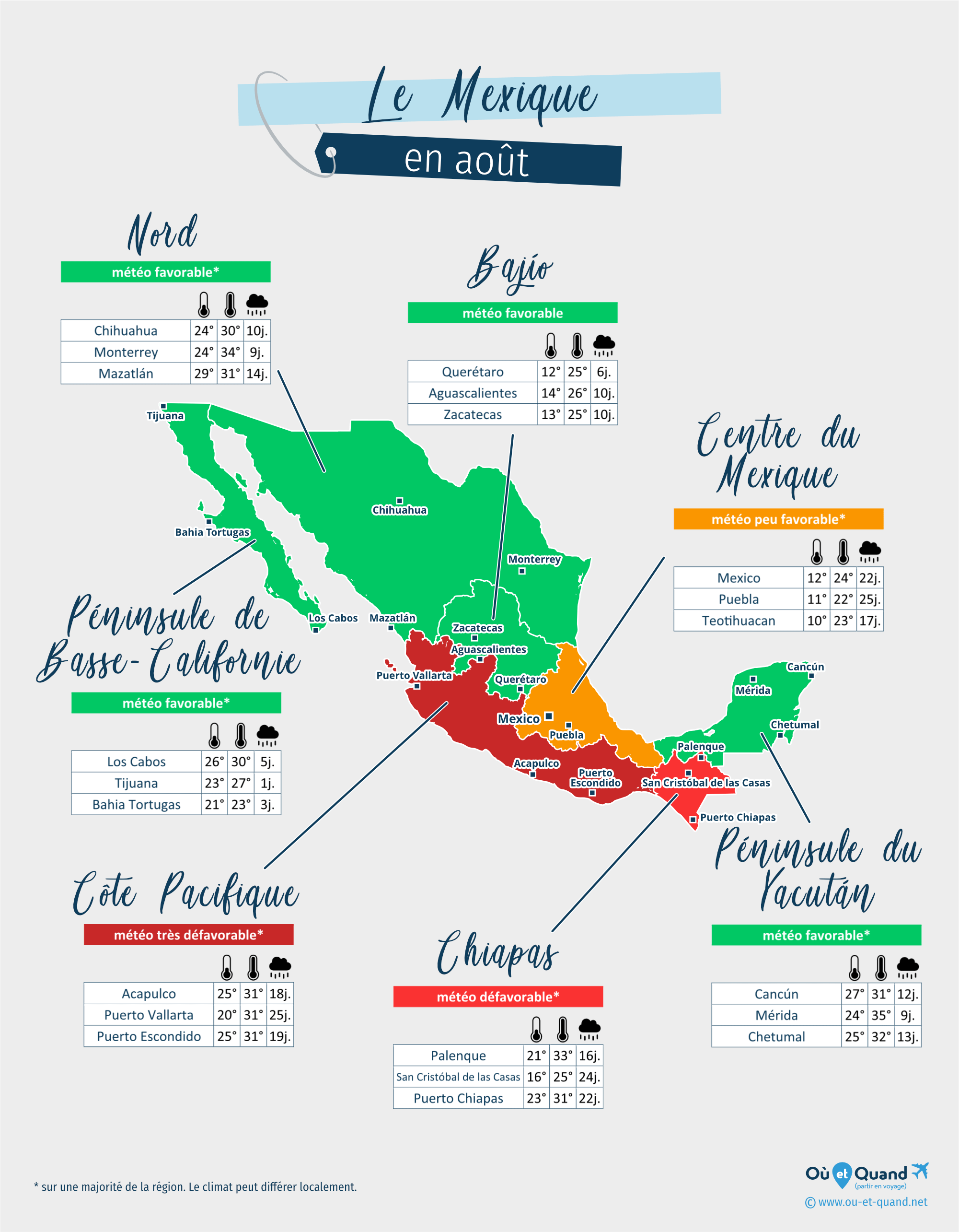 Avec des conditions climatiques favorables, le mois d'août est un bon mois pour aller dans cette localité au Mexique.