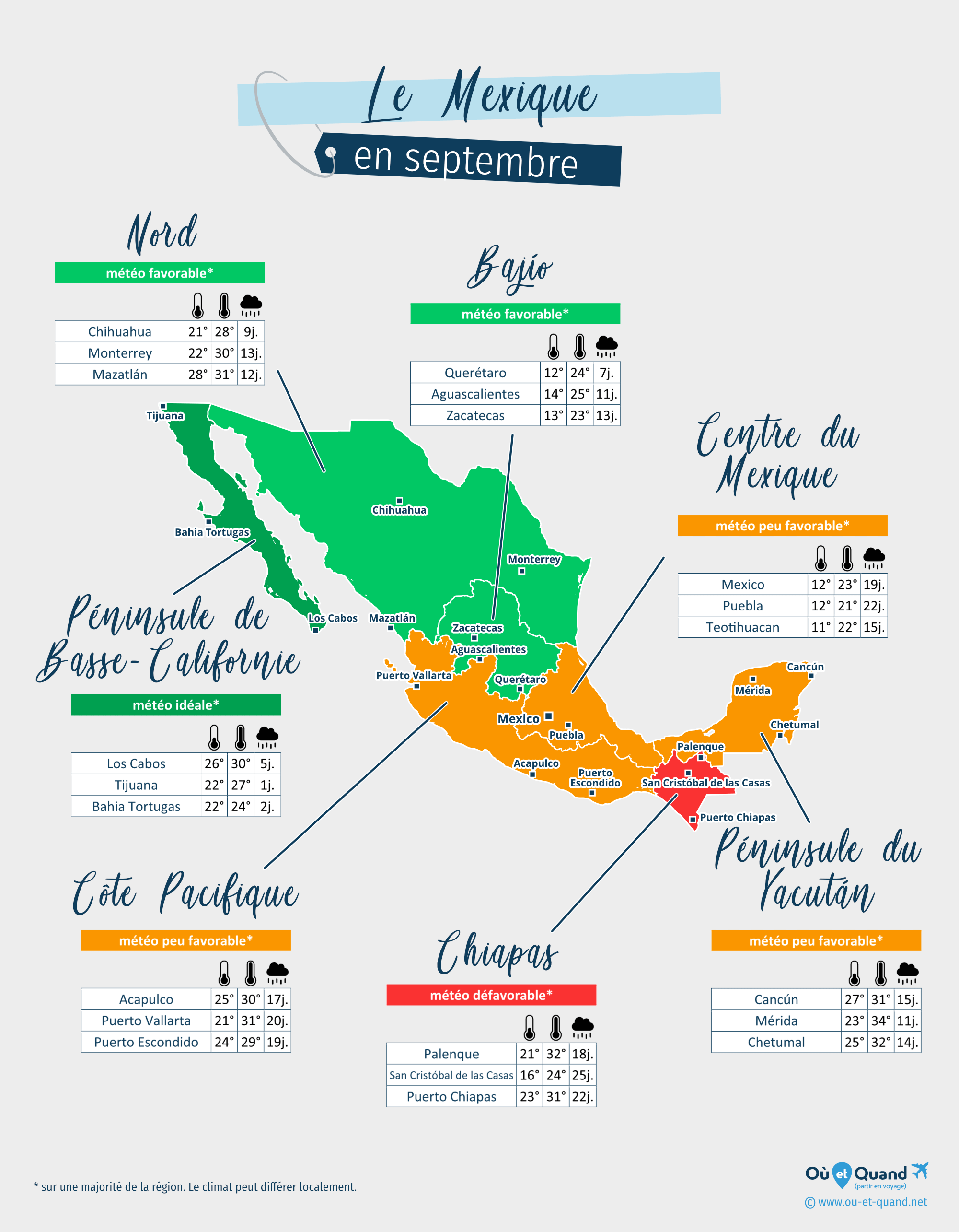 Avec un climat favorable, septembre est un bon mois pour partir là-bas au Mexique.