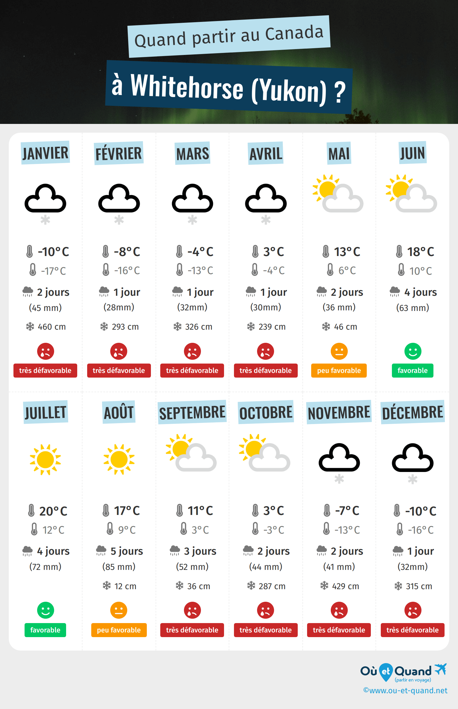 Infographie : quand partir à Whitehorse (Yukon) ?