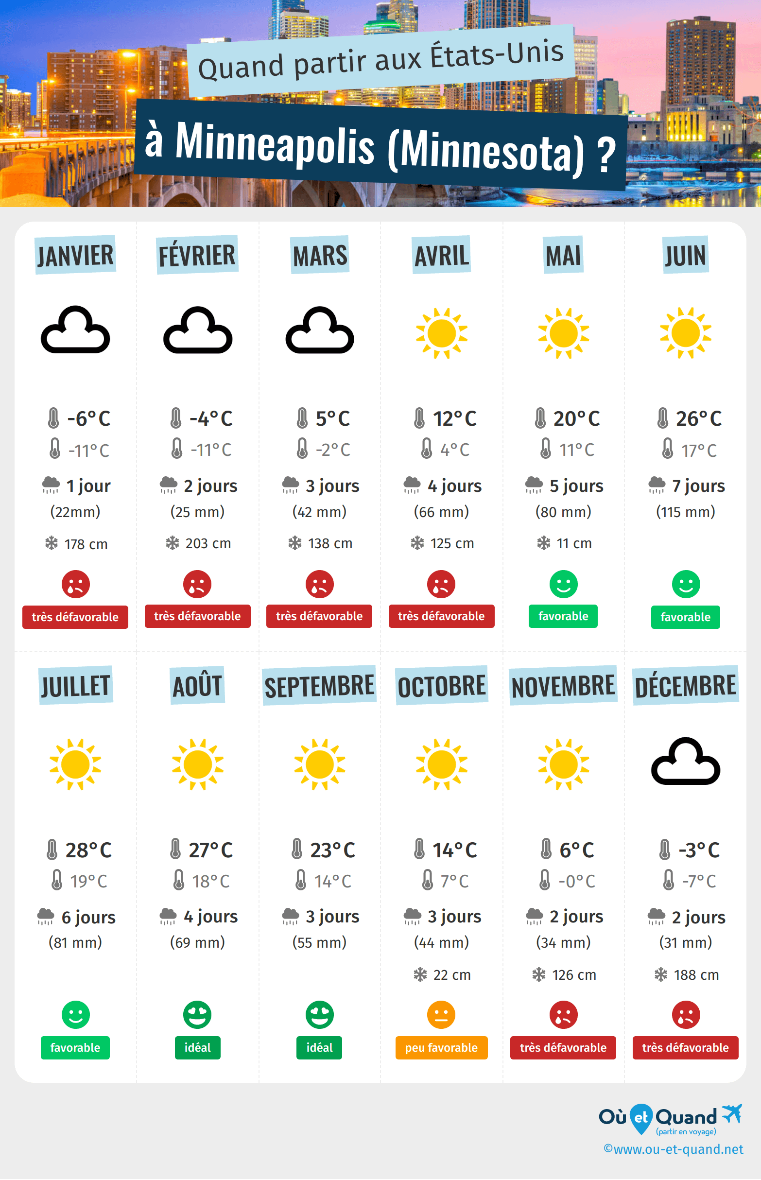 Infographie : quand partir à Minneapolis (Minnesota) ?