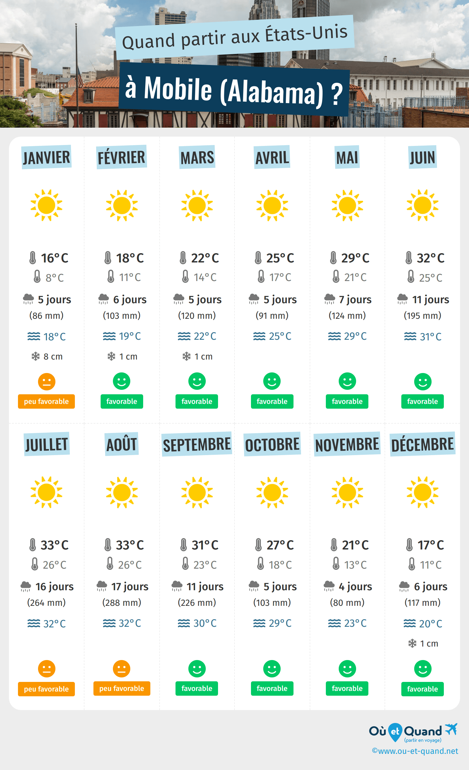Infographie : quand partir à Mobile (Alabama) ?
