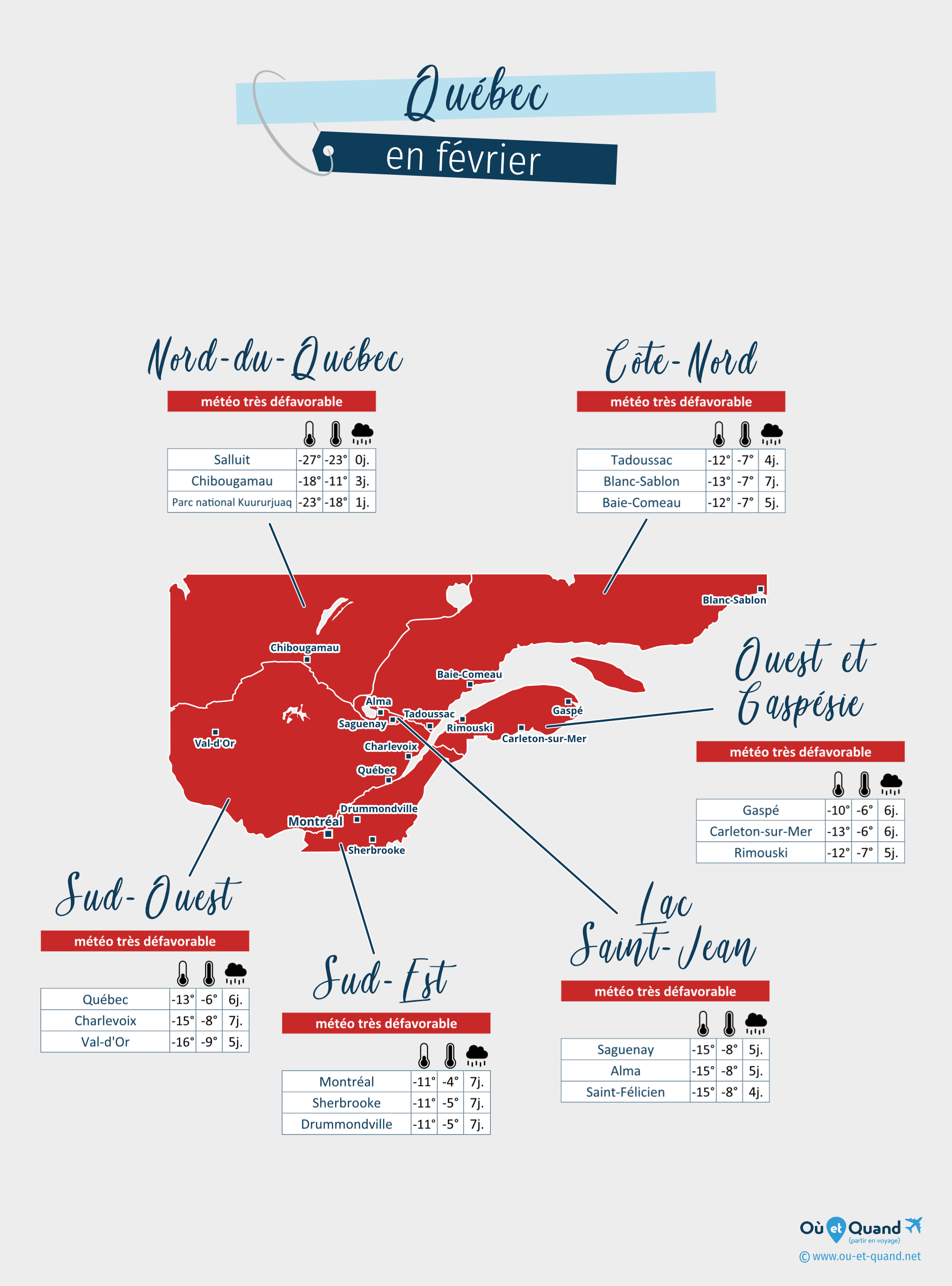 Avec un climat très défavorable, le mois de février n'est pas un mois recommandé pour aller là-bas au Québec.