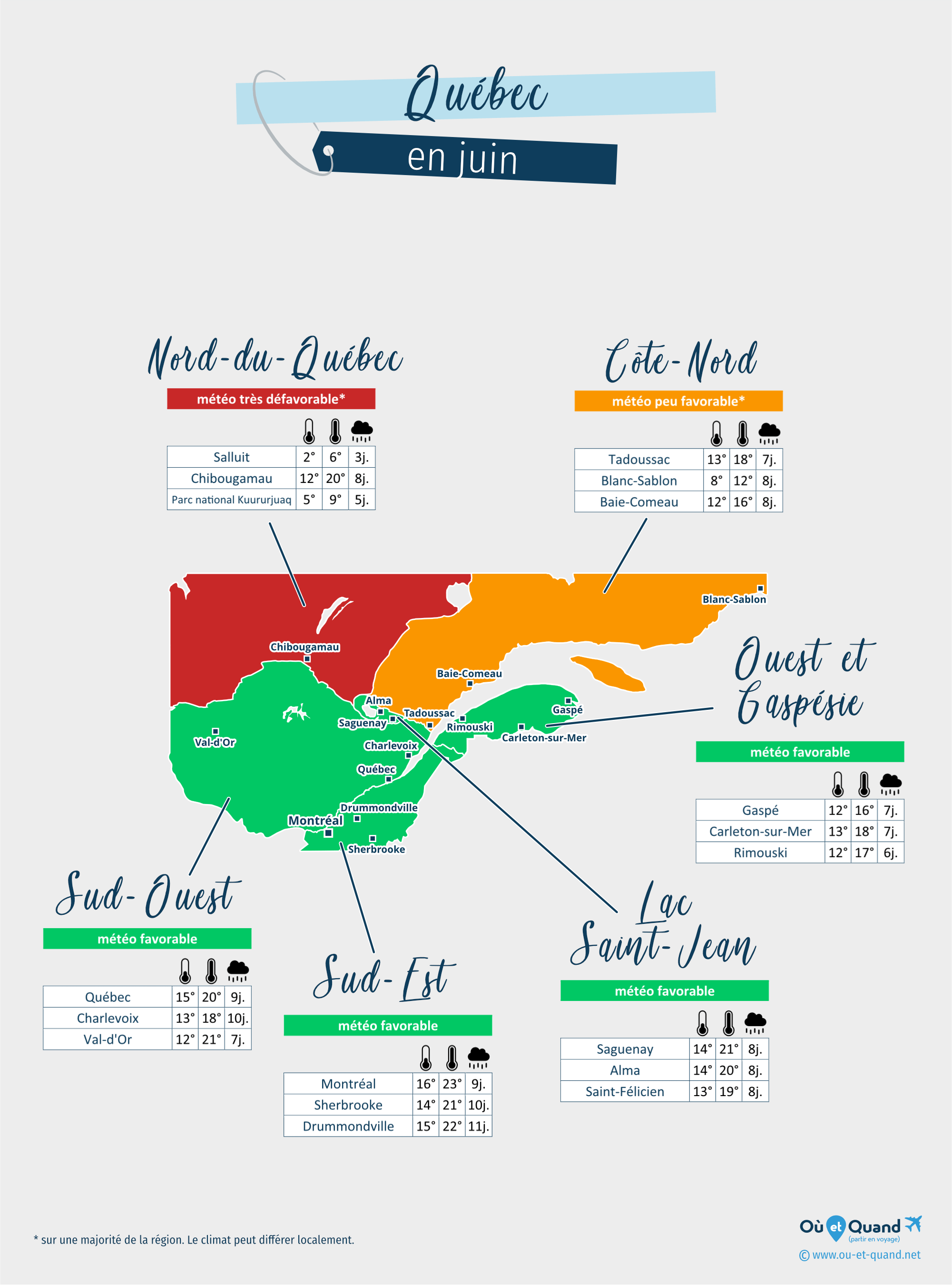 Principales villes du Québec en juin