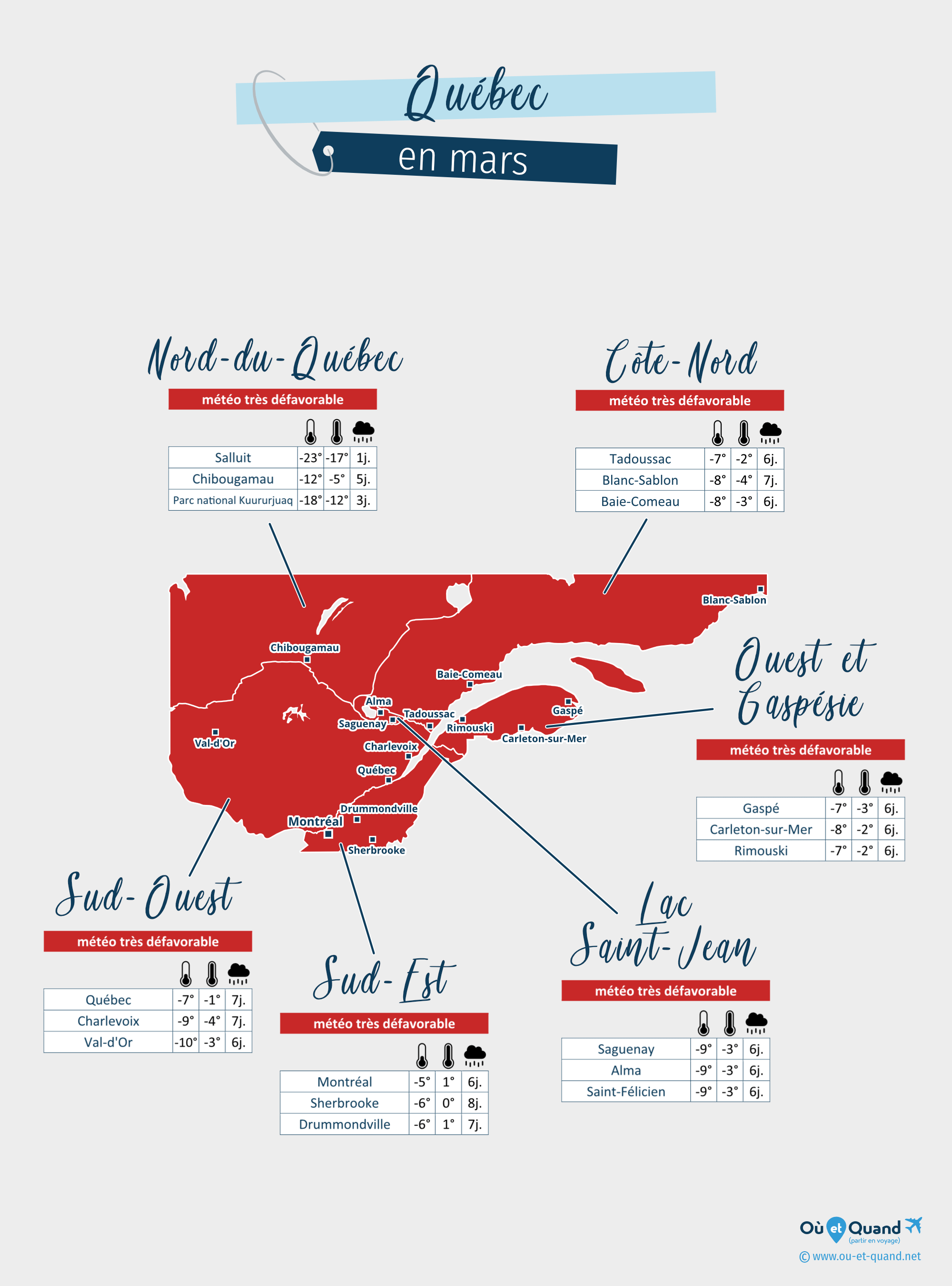 | Ville de Québec en mars | climat très défavorable |
