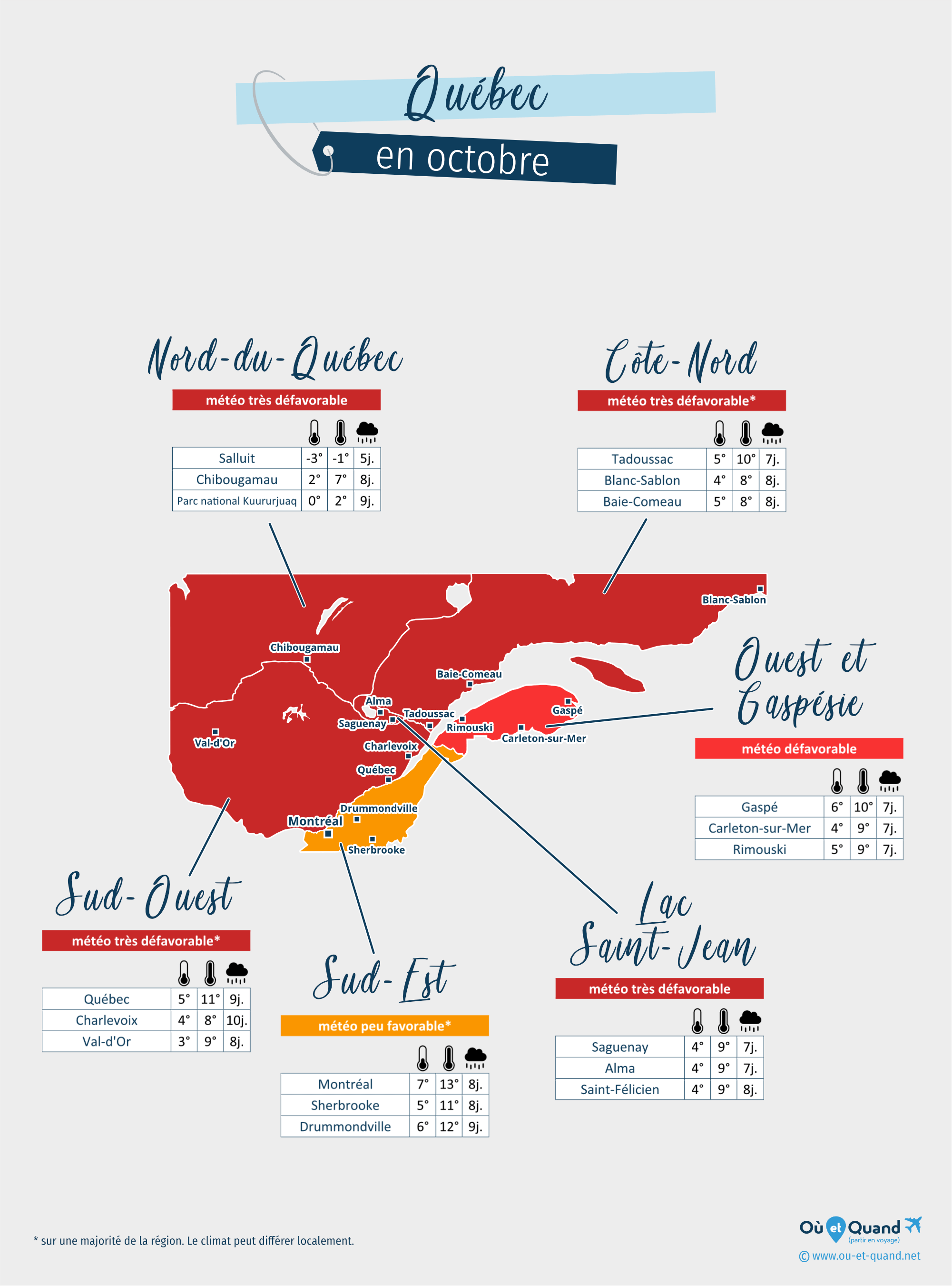 Avec un climat très défavorable, le mois d'octobre n'est pas un mois conseillé pour partir là-bas au Québec.