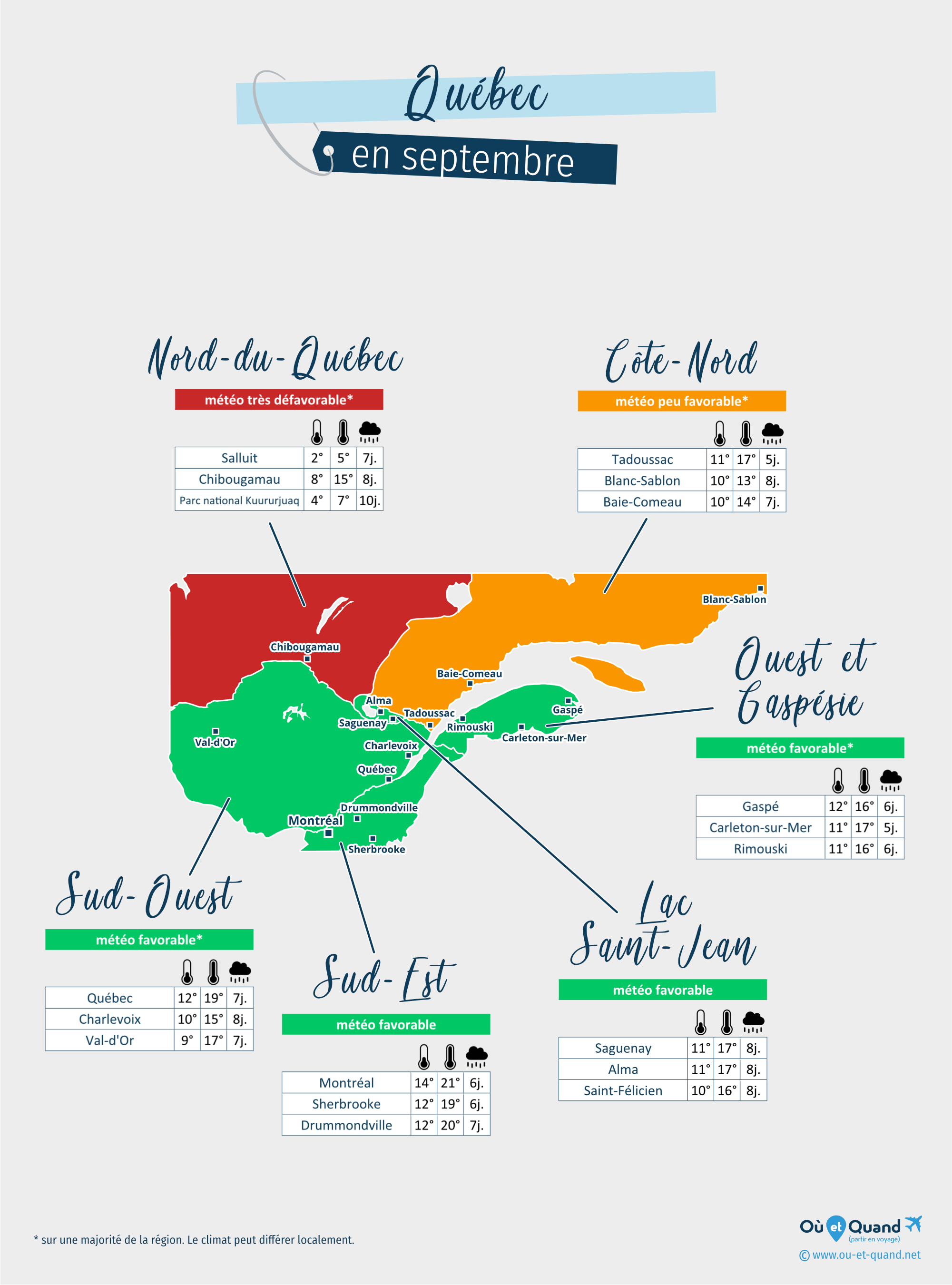 Météo moyenne du Québec en septembre