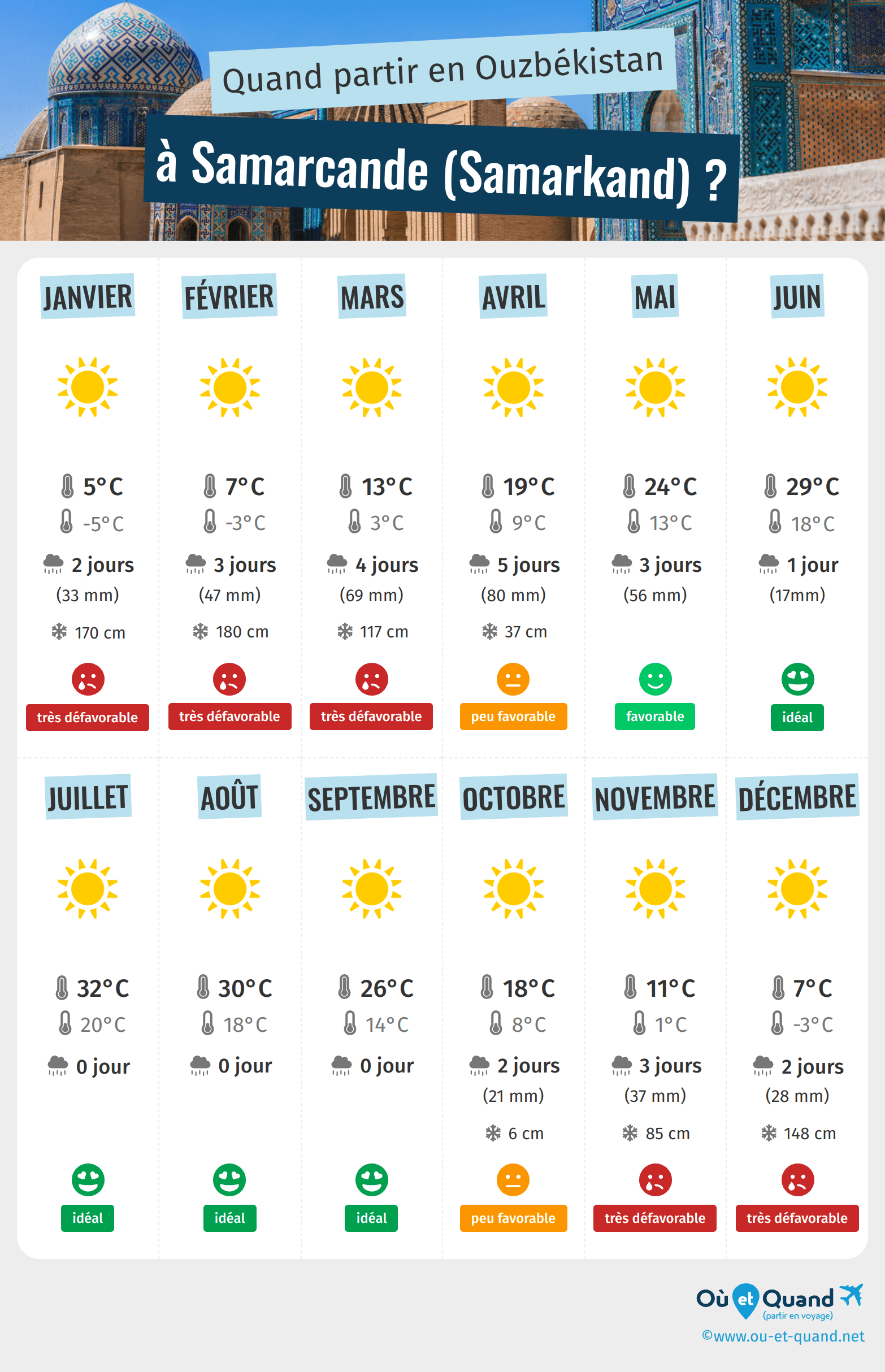 Infographie : quand partir à Samarcande (Samarkand) ?
