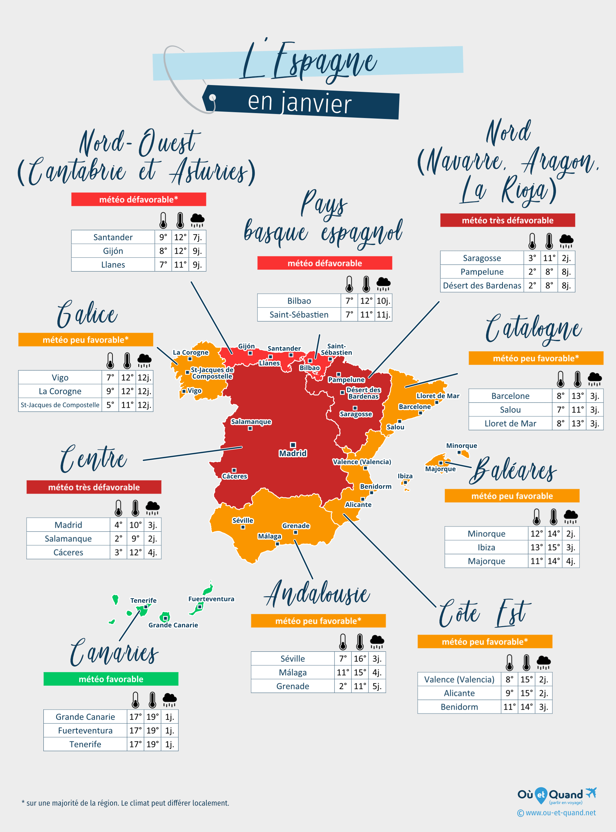 Quel temps fait-il en Espagne en janvier ? Découvrez la météo et les températures prévues en janvier 2026