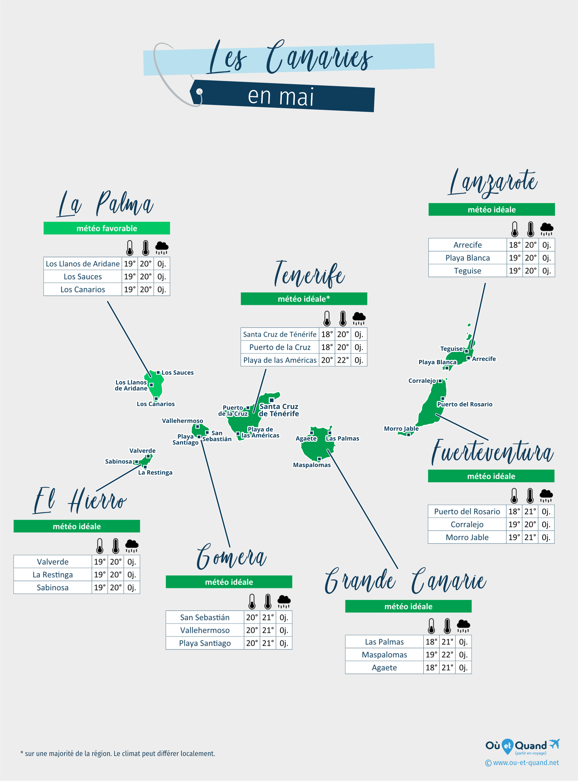 Principales villes des Canaries en mai