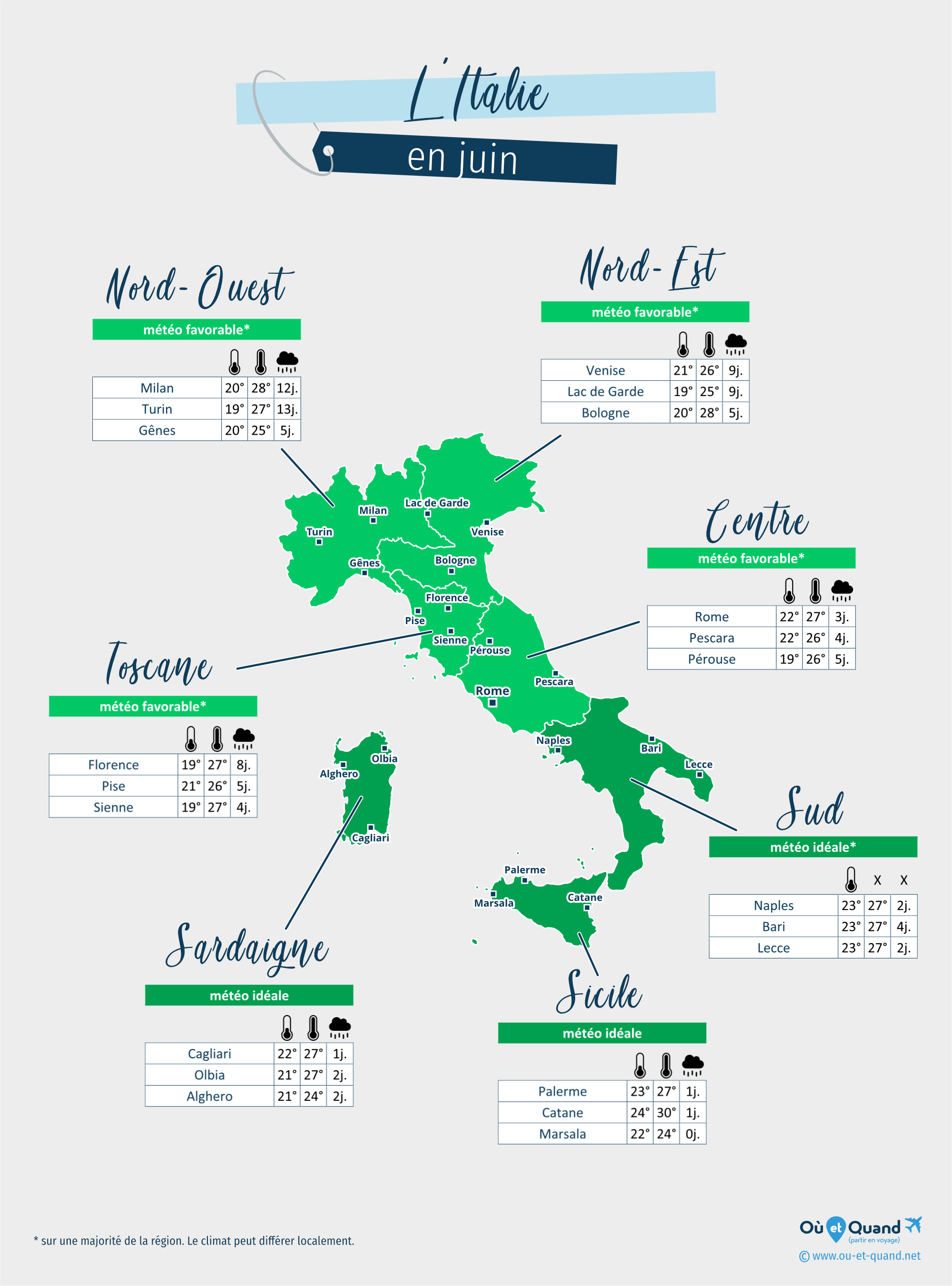 Principales villes de l'Italie en juin