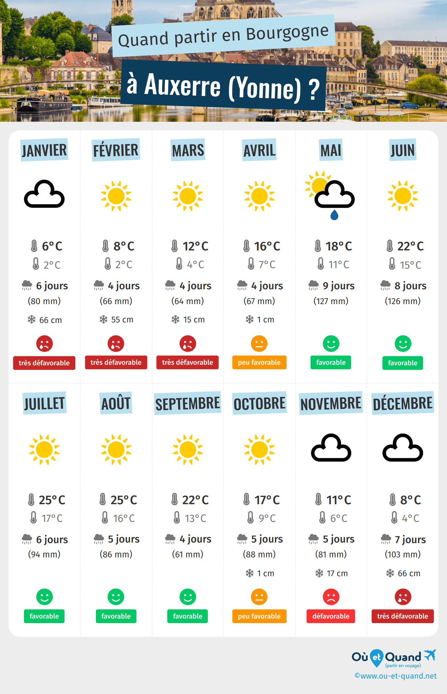 Infographie : quand partir à Auxerre (Yonne) ?