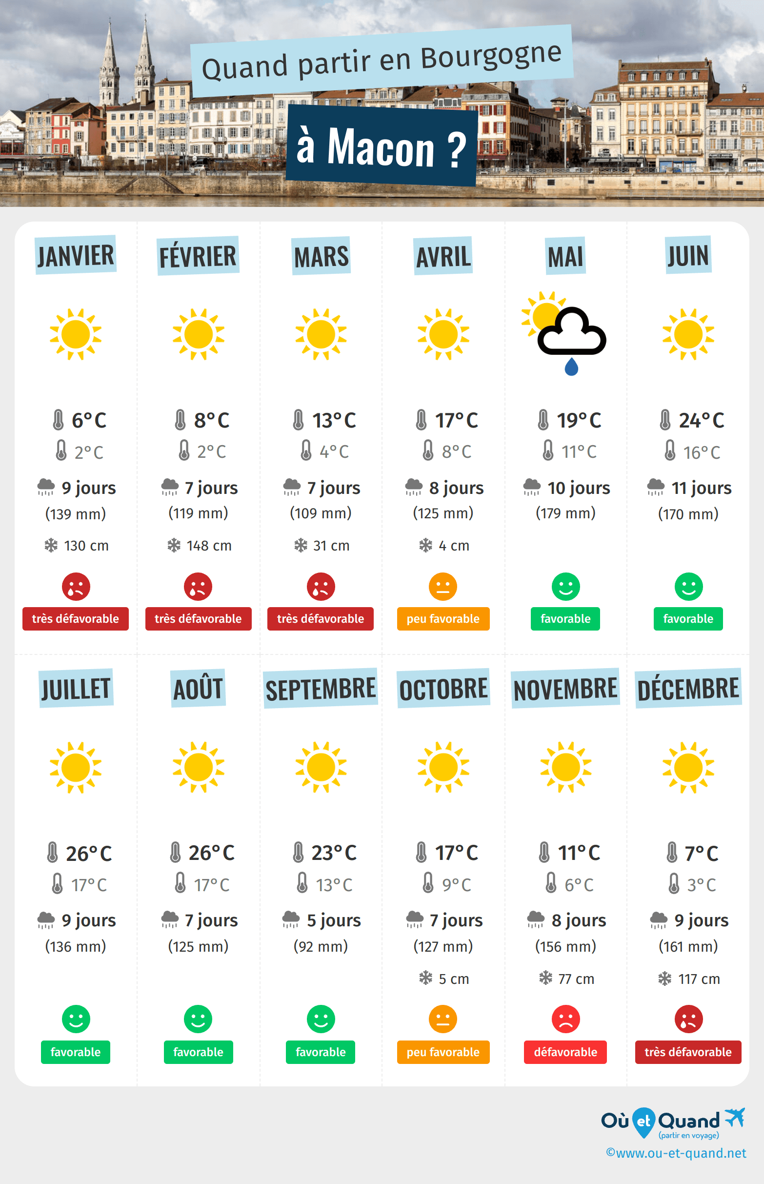 Quand partir à Macon en Bourgogne en fonction du climat, des prix et des saisons ?