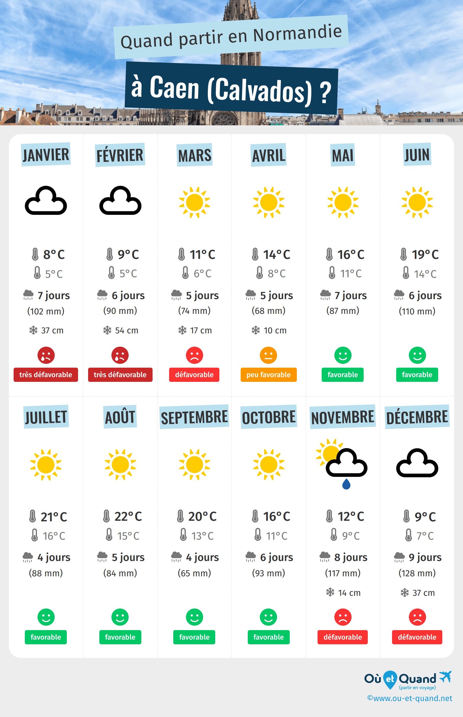 Infographie : quand partir à Caen (Calvados) ?